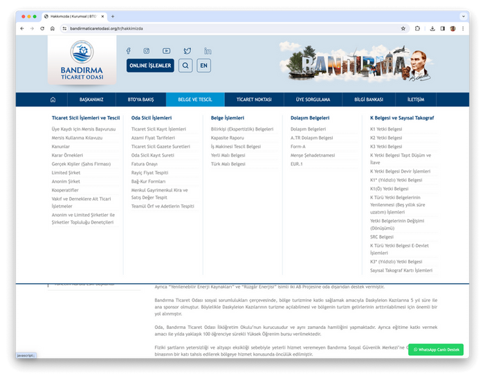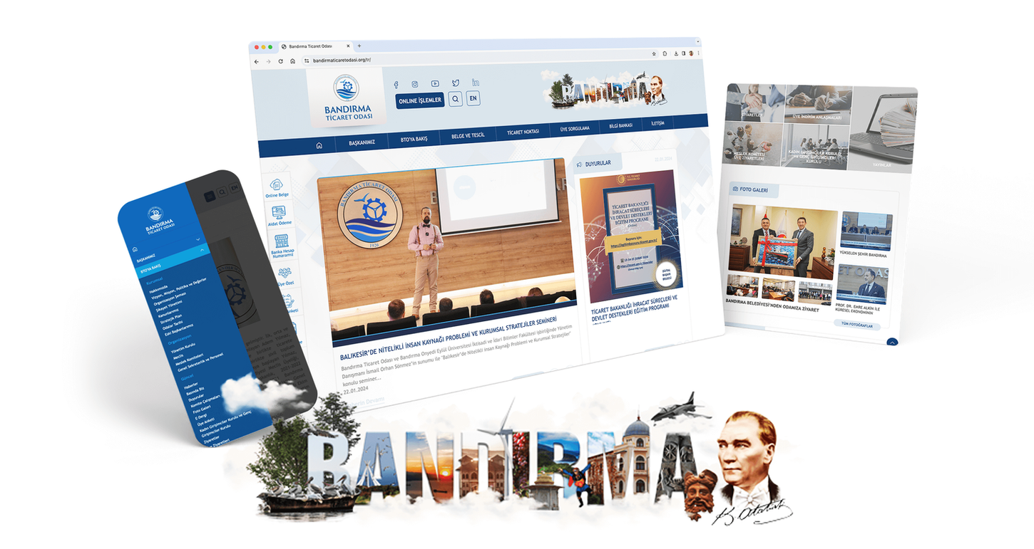 Bandırma Ticaret Odası ile birlikte, kurumsal ve kapsamlı bir web sitesi tasarım ve yazılım projesini başarıyla tamamlamış olmaktan mutluluk duyuyoruz. Bu projede, markanın dijital varlığını güçlendirecek modern ve işlevsel bir çözüm sunduk.